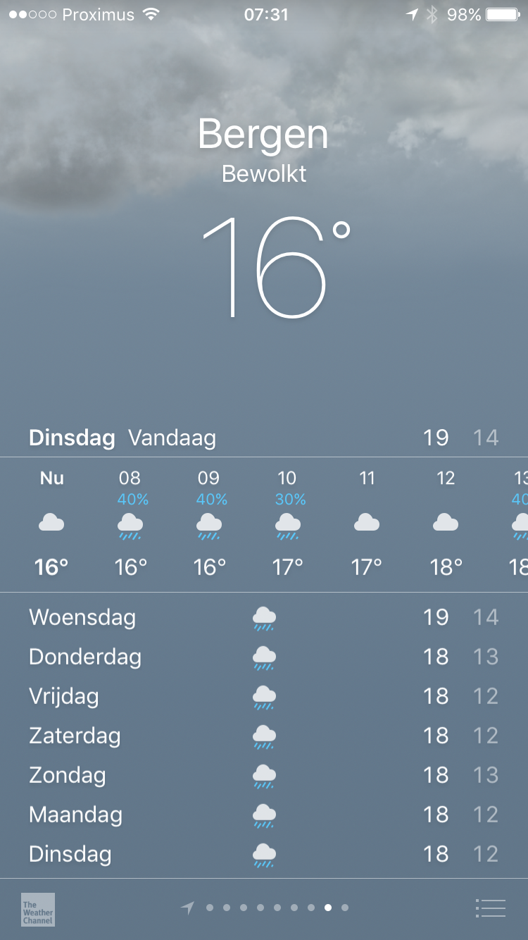 July 25, 2017July 26, 2017Preparing for Norway : weather predictions.Categories Norway Erm… this is not what you want to see when you go on vacation : But people told me this actually is considered quite good in Bergen :-). And we are fully prepared!!