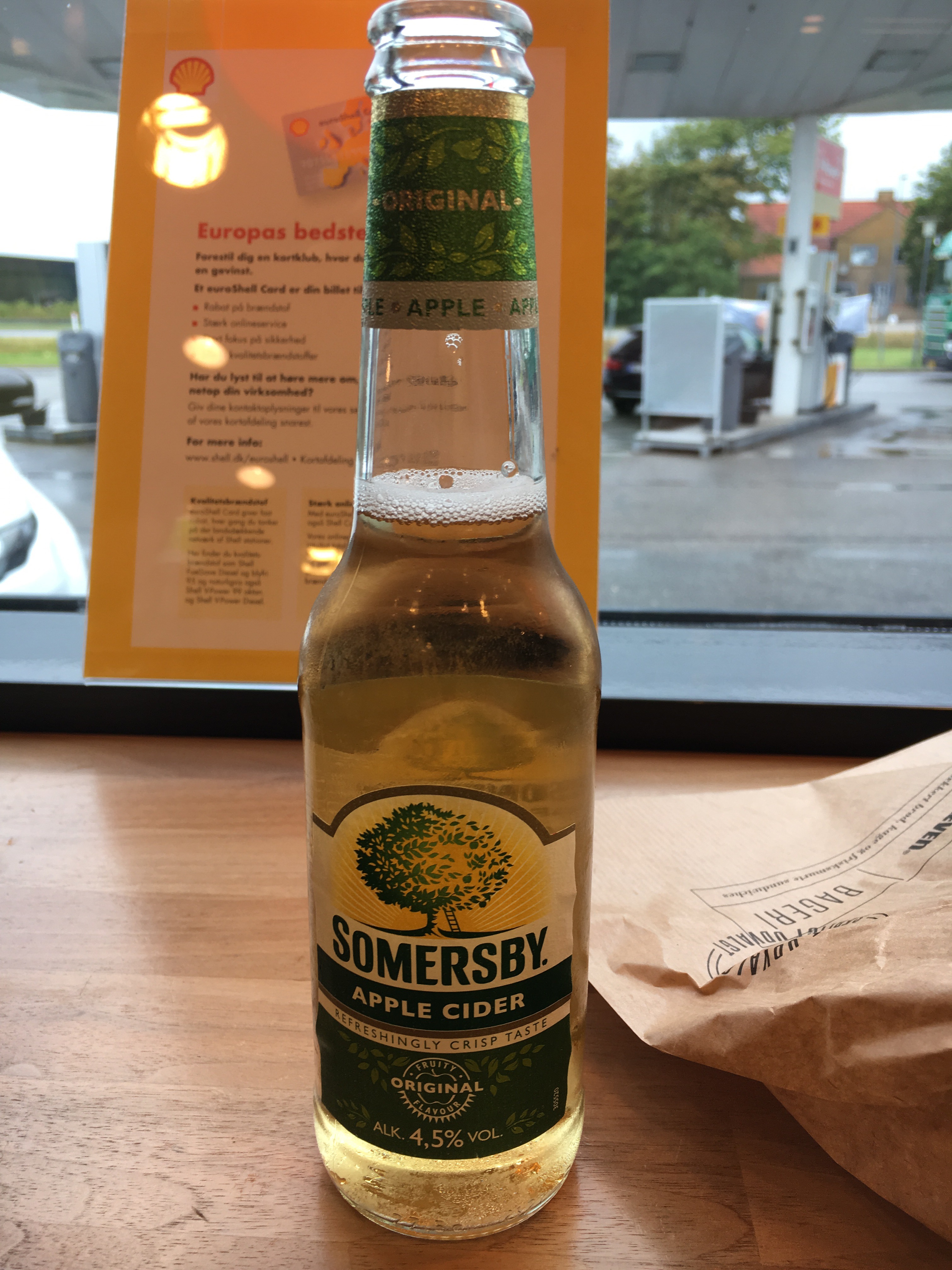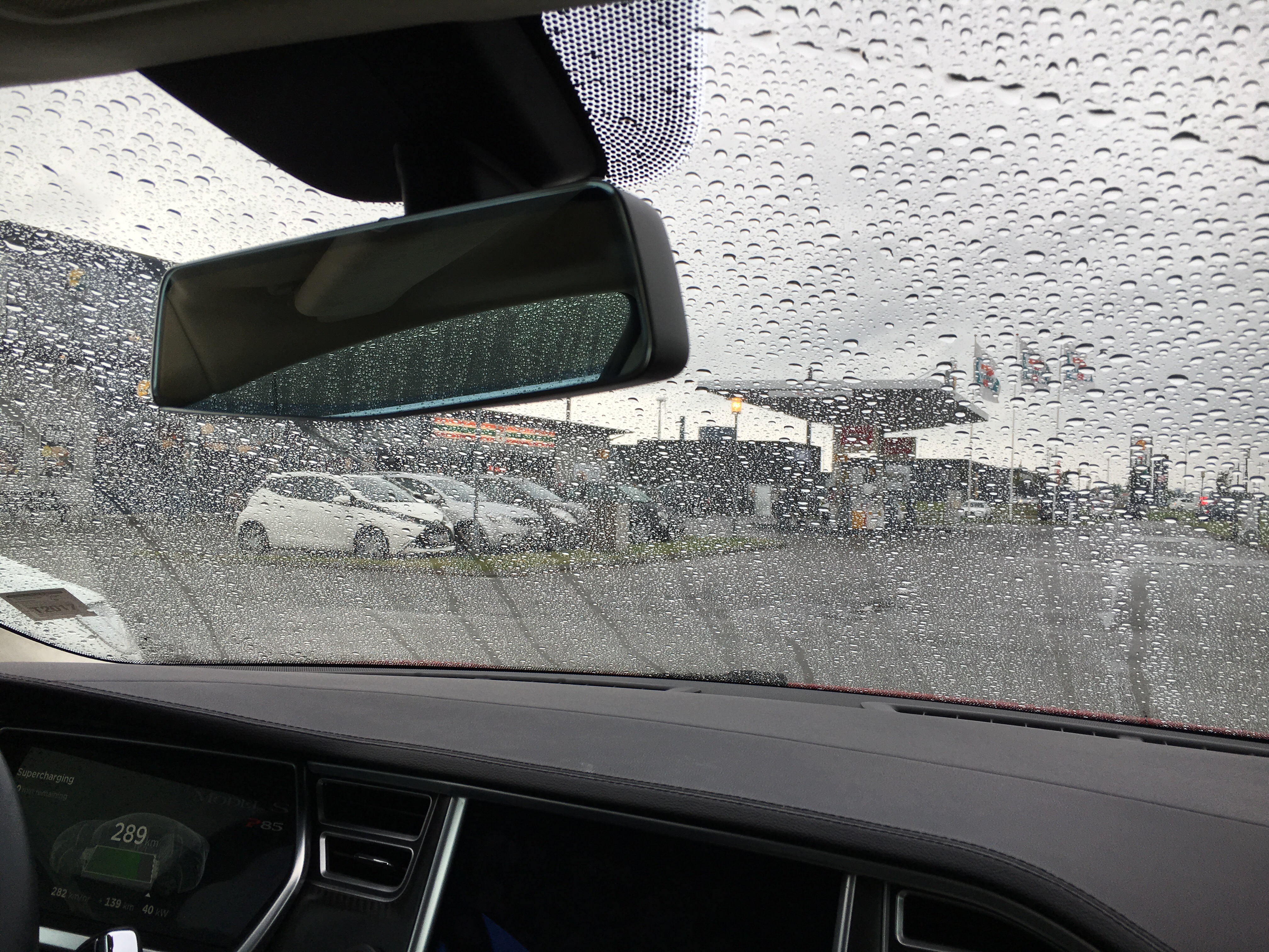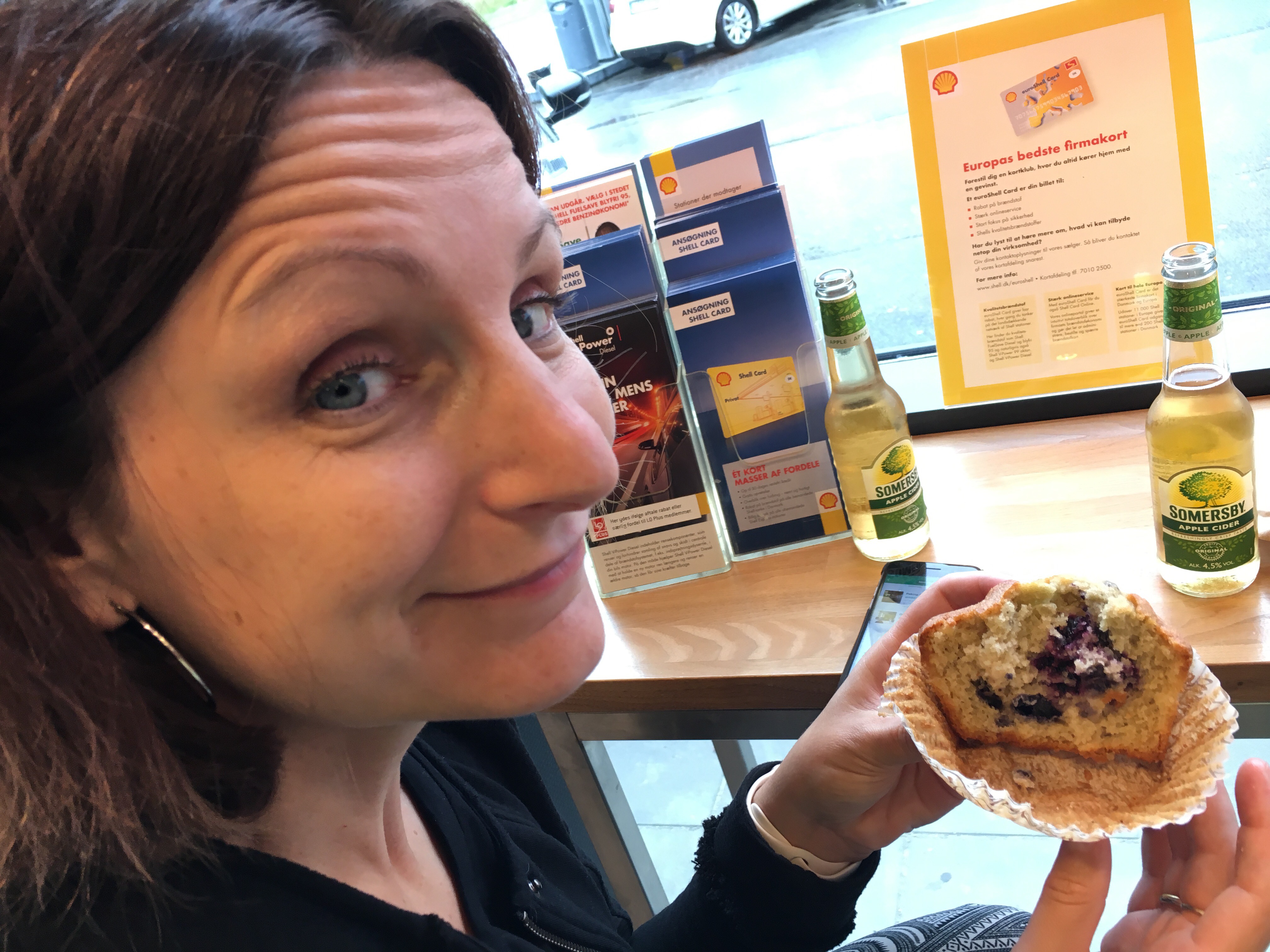 Still pouring cats and dogs but it will be over in an hour. We make a quick charging stop before we go to Hirtshals. Time for some snacks at the local 7-11.
