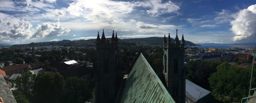 After the Rockheim we made a stroll through the city and went to visit the well-known Nidaros Domkirke. A beautiful restored Lutheran cathedral where the Norwegian kings are traditionally crowned. We climbed the main tower (171 excruciating steep steps) to enjoy a beautiful view on Trondheim.