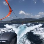 Today we went to visit Fabrice and Carine in La Croix Valmer. Fabrice took us out on a boat ride and the kids showed their Wake-boarding skills. Valentine, Victoire, Juliette and Kristan each had a go with the wakeboard. Some runs where more successful than others :-).