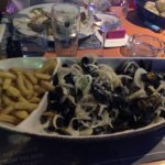 The second day we were invited for dinner at their place. Before going for groceries we had a Jeu de Boule in the garden where Victoire and me teamed up against Fabrice and David. It ended in a tie after some magnificent points by brave Victoire who’s moto was “It’s Okaaay”! After the game we went to the butcher in La Croix Valmer to get supplies for the fabulous Fondue Bourgignon that would follow but of course… first we took a small “apero” at the local bar. Oufti… Fabrice, David and Germin sure know how to take a good apero :-).